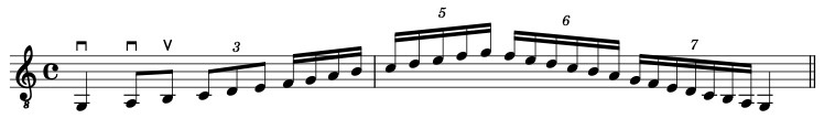 Once you feel comfortable with different tuplets, the next step is to practice them in succession. Instead of ending each scale on a quarter note, jump right into the next one using the next tuplet. You’ll need to anticipate the rhythm of the next tuplet. Start slowly so that you can perform all tuplets cleanly and accurately. Septuplets will be hard to play if you start too fast!